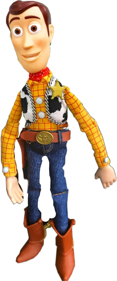 - The only physical difference between this Woody and the canon Woody from the Toy Story franchise, is that he lacks a hat. It is probably that the hat for Woody was lost due to most figurines of Woody having him with a clastic hat.